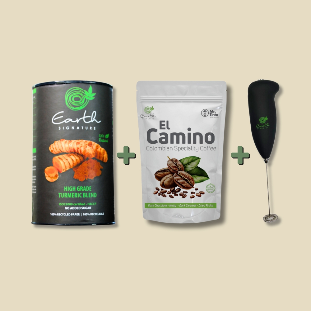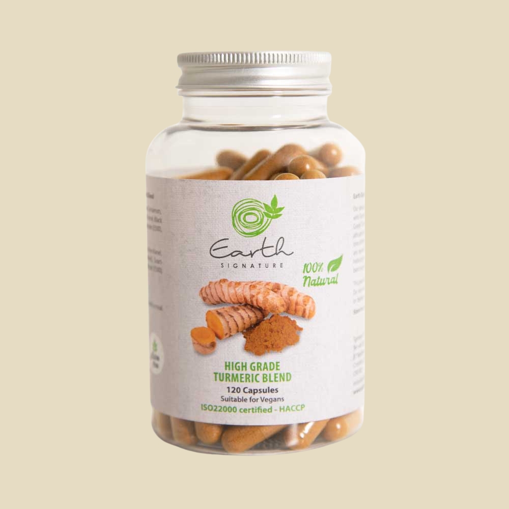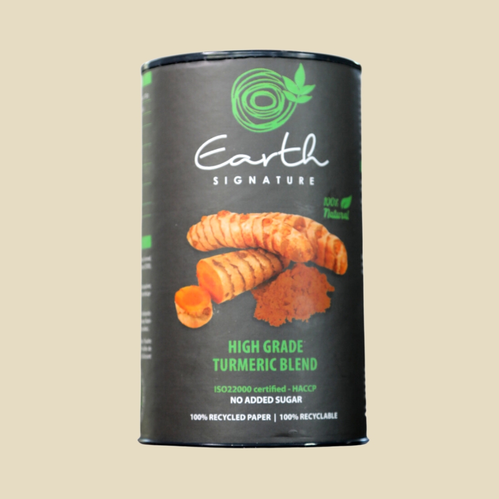 of organic high-grade Turmeric Blends and fresh herbs and spices.
